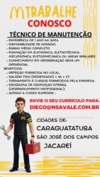 Favor enviar currículos com o titulo ''técnico de manutenção'' E-mail: DIEGO@NSAVALE.COM.BR